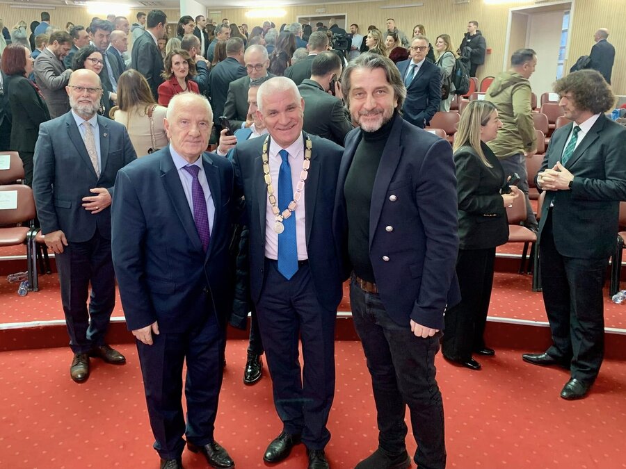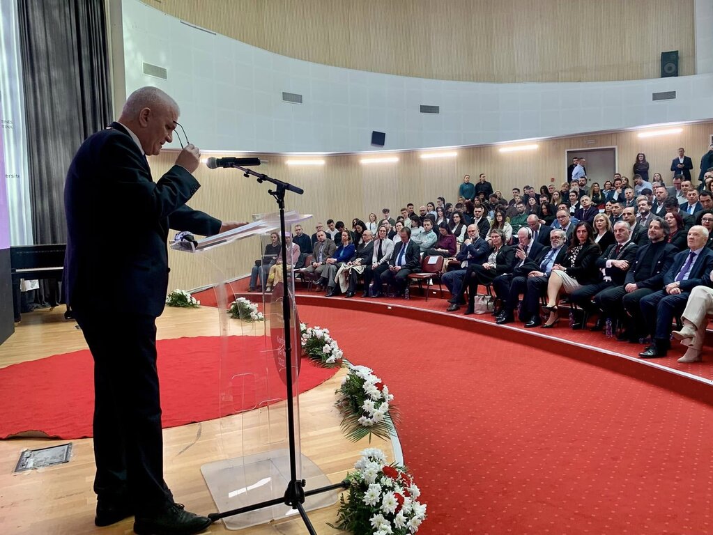 Në ceremoninë solemne të 55-vjetorit të themelimit të Universitetit të Prishtinës “Hasan Prishtina”, Rektori i UNISHK, Prof. Dr. Tonin Gjuraj, mbajti një fjalë përshëndetëse në cilësinë e Rektorit të UNISHK dhe Nënkryetarit të Konferencës së Rektorëve të Shqipërisë.