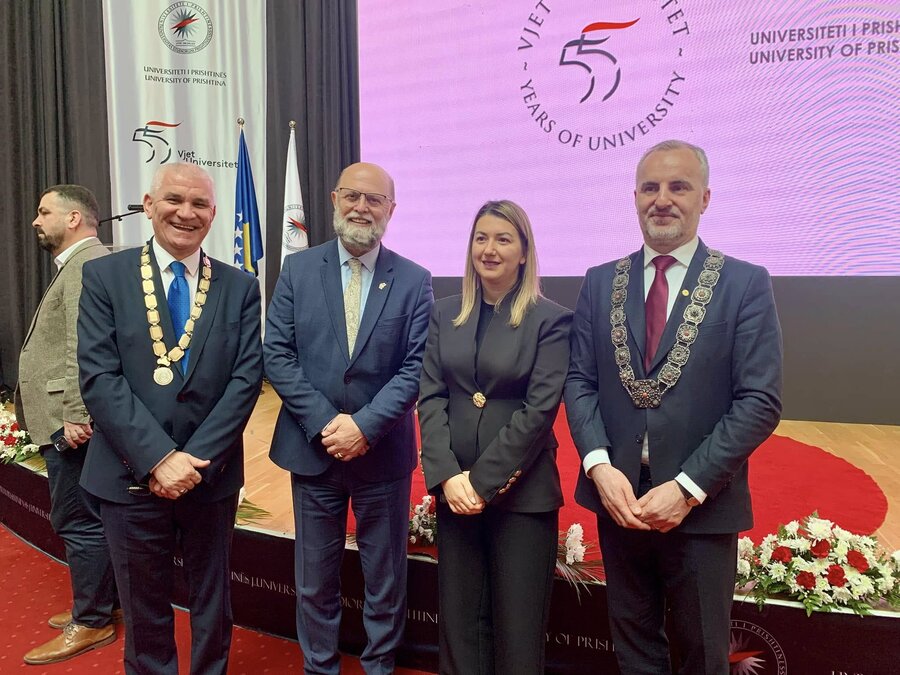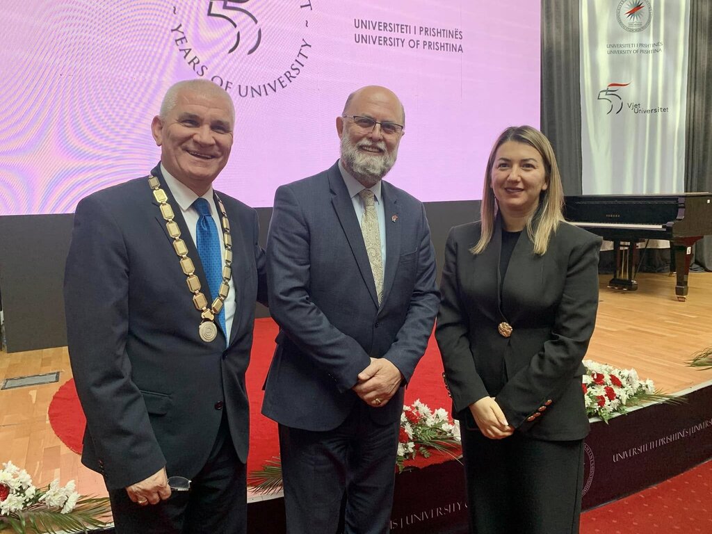 “Gëzuar dhe përjetësi për Universitetin e Prishtinës! Le të jetë ky përvjetor një tjetër pikënisje për rritjen e bashkëpunimit akademik mes nesh!” – përfundoi ai, duke përcjellë edhe urimet e Kryetarit të Konferencës së Rektorëve, Prof. Dr. Artan Hoxha.