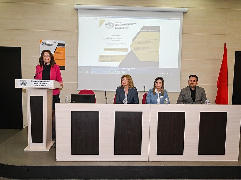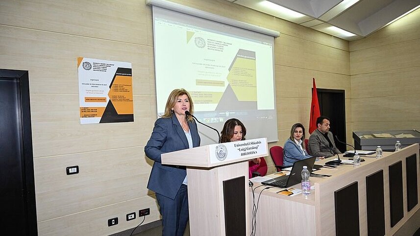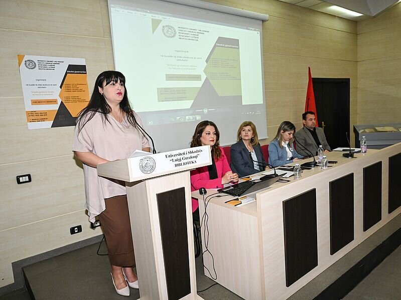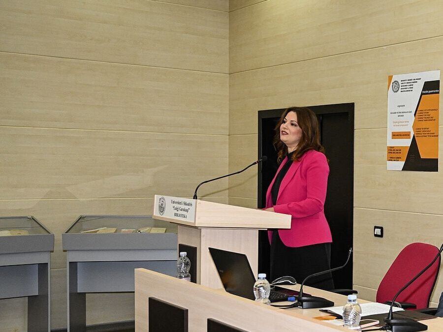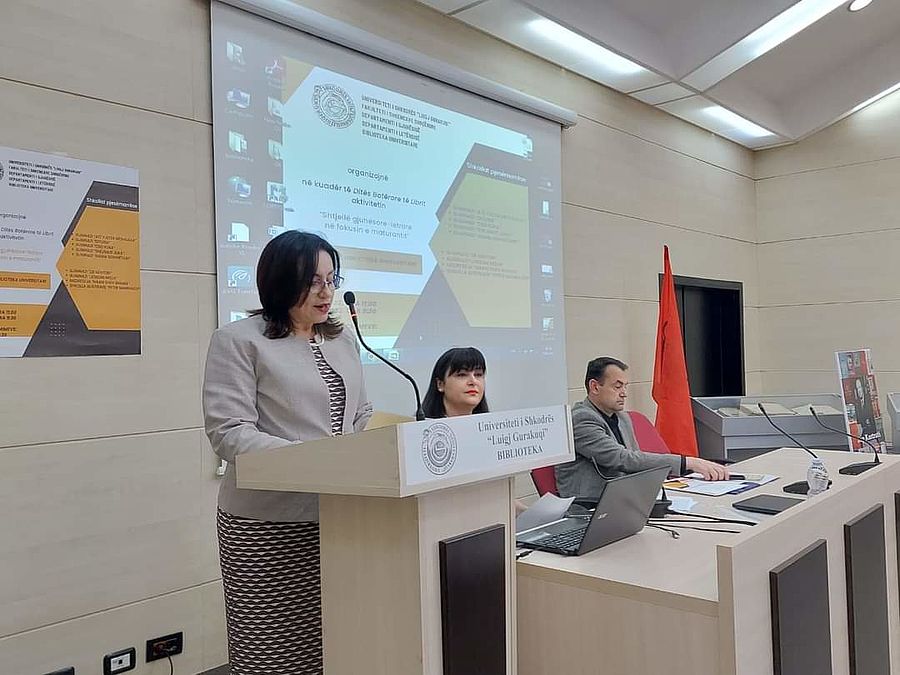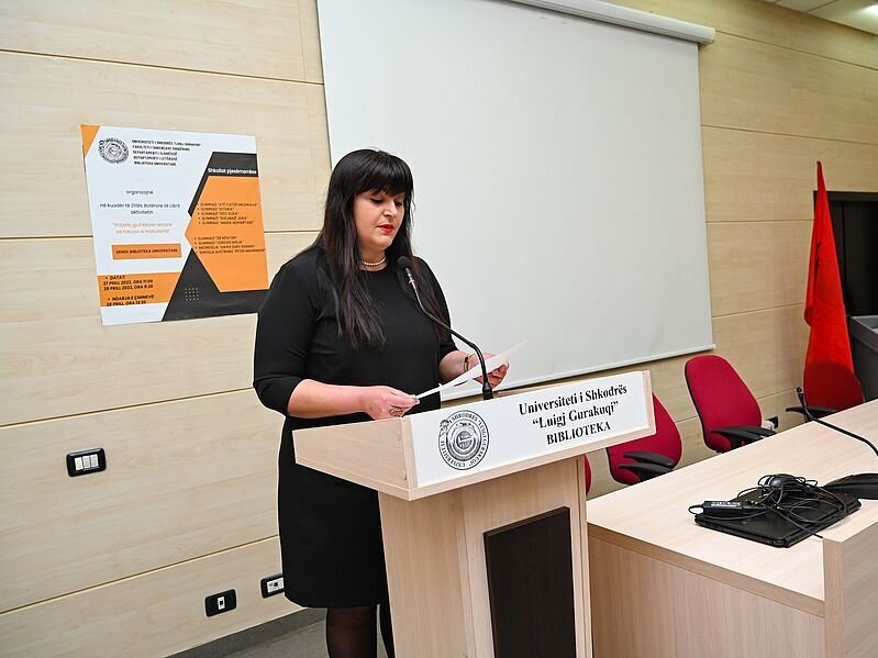 Znj. Alketa Bekteshi (Drejtore e Bibliotekës Universitare) solli një prezantim mbi ekspozitën e hapur për këtë aktivitet, me disa prej dokumenteve dhe botimeve të rralla gjuhësore e letrare, pjesë e fondit të kësaj Biblioteke, duke evidentuar faktin që bibliotekat krijojnë shoqëri të qytetëruara.