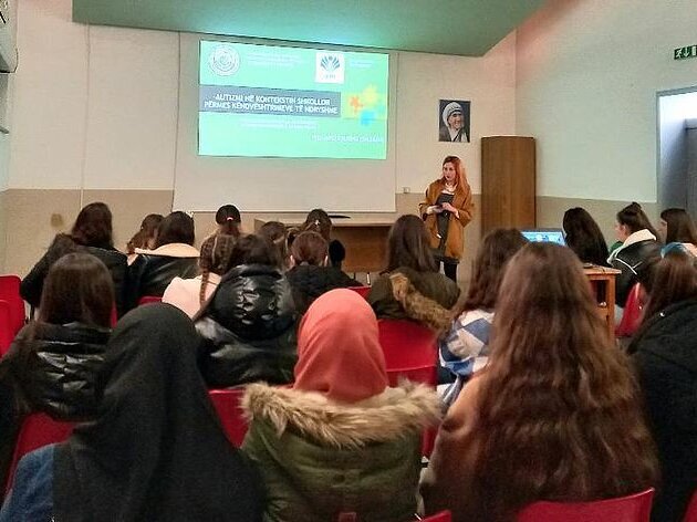 Kjo përvojë teoriko-praktike me titull “Autizmi në kontekstin shkollor përmes këndvështrimeve të ndryshme” kishte si qëllim njohjen nga afër të realitetit që jetojnë çdo ditë shkollat në përfshirjen e fëmijëve me Çrregullim të Spektrit Autik në klasa me nxënës me zhvillim neurotipik. Studentët u njohën fillimisht me aspektet shkencore të lidhura me Autizmin në kontekstin shkollor, në prezantimin e profesoreshë PhD Megi Vjerdha (Shllaku), ku në fokus ishin sfidat sensoriale, sfidat e lidhura me të mësuarin e me menaxhimin emocional në shkollë. Studentët jetuan përmes një ushtrimi (përvoje sensoriale praktike) mbiangarkesën sensoriale që fëmijët me autizëm jetojnë çdo ditë.