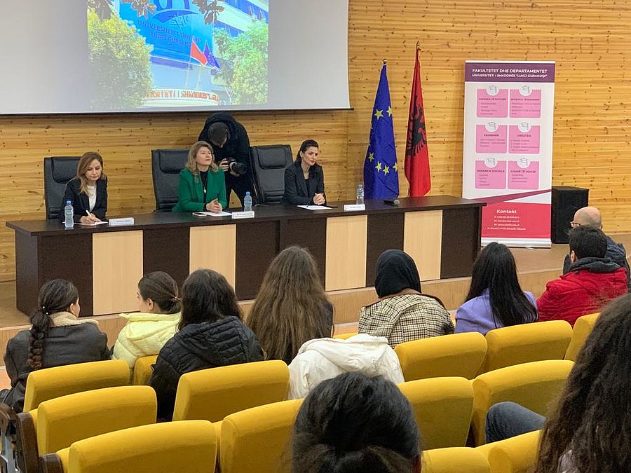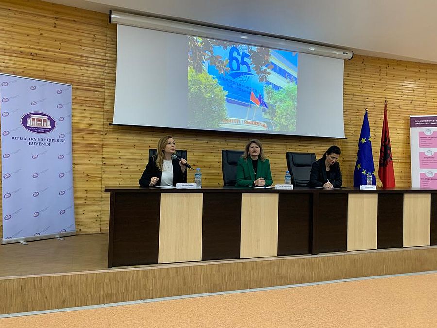 Ditën e hënë, më datë 12.12.22, në Sallën e Konferencave të Fakultetit Ekonomik u zhvillua një bashkëbisedim konstruktiv mes studentëve të universiteti, kryetares së Komisionit të Integrimit Europian, zonjës Jorida Tabaku, dhe nënkryetares së këtij komisioni, zonjës Etilda Gjonaj.