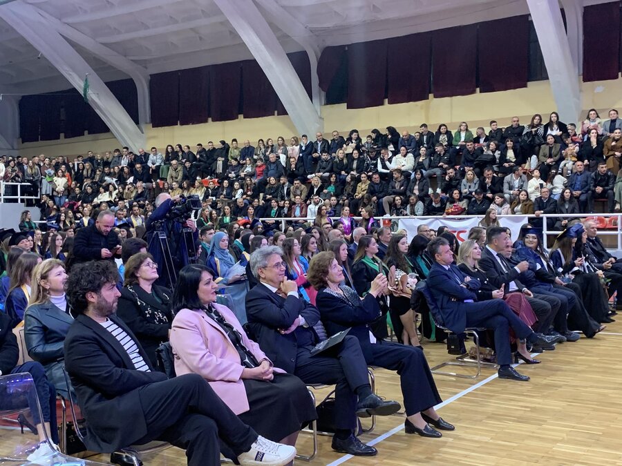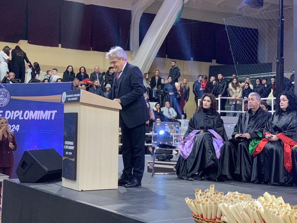 Ceremonia u përshëndet edhe nga kryetari i Bashkisë Shkodër, zoti Benet Beci, i cili nënvizoi rëndësinë e bashkëpunimit mes Universitetit dhe Bashkisë për të ndërtuar një të ardhme më të mirë për të rinjtë dhe qytetin.
