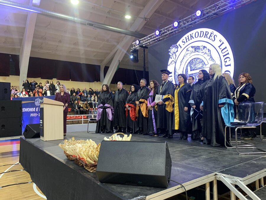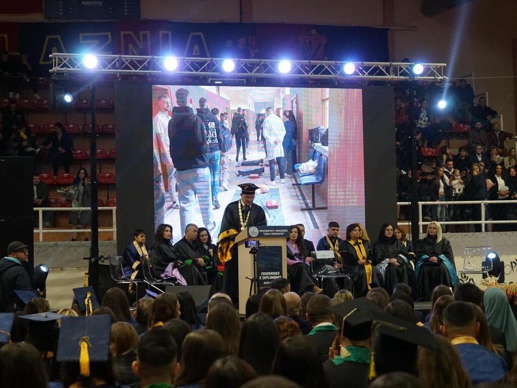 Në një atmosferë festive, Universiteti i Shkodrës “Luigj Gurakuqi” zhvilloi ceremoninë e diplomimit për studentët e ciklit të parë dhe të dytë të studimeve. Ceremonia nisi me nderimin e Himnit Akademik, simbol universal i jetës studentore dhe i botës akademike.