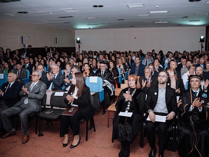 Në këtë ceremoni solemne, prof.dr.Vehbi Hotit iu akordua titulli “Doctor Honoris Causa” dhe prof.dr. Dhimitër Dhorës, ish-rektor i Universitetit të Shkodrës, iu akordua titulli “Profesor Emiritus”.