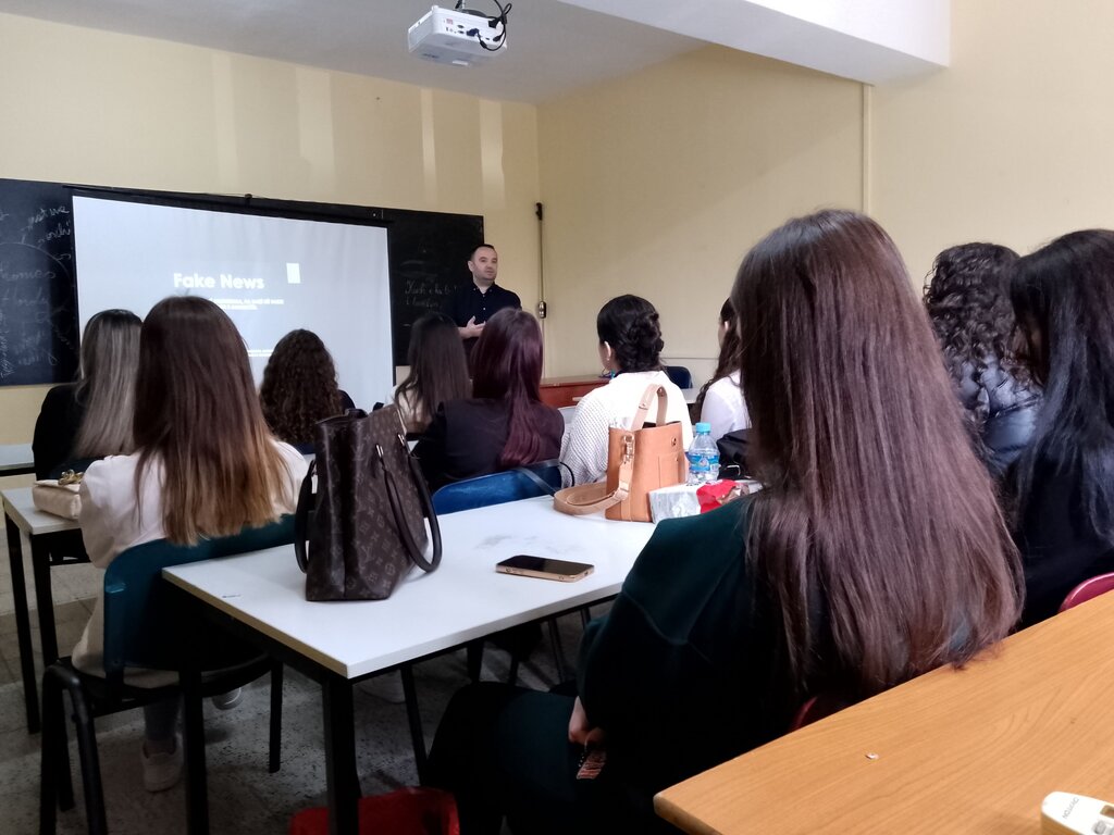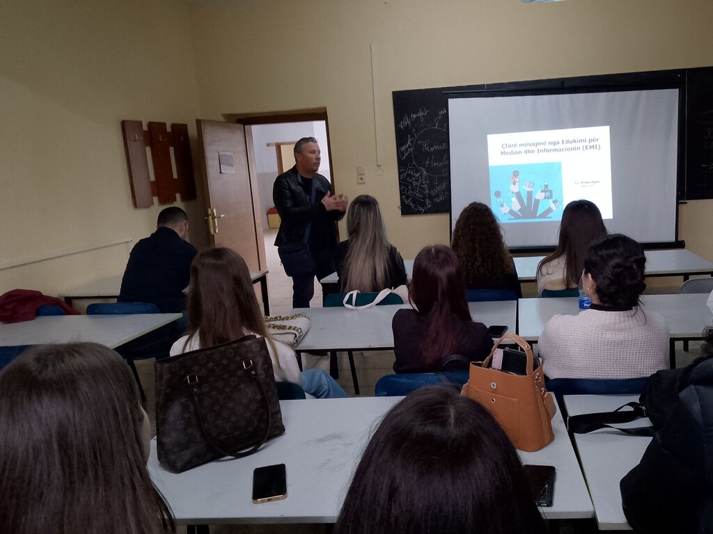 Në kuadër të projekti “Edukimi për median dhe informacionin në universitete: nga pilotimi në zbatim” u zhvillua me studentët e Departamentit të Anglistikës një trajnim 2 ditor për Edukimin për Median. Ky trajnim i mbajtur nga ekspertët e EMI-t z. Rrapo Zguri, z. Emirjon Senja, z. Erlis Çela dhe z. Lutfi Dervishi synoi të njihte studentët me mënyrat e përcjelljes së informacionit nga media, rolin dhe rëndësinë që ka ajo në informim, por edhe efektet negative të saj si dezinformi, propaganda dhe informacionet e rreme. Studentët u njohën edhe me detaje rreth mënyrës së identifikimit të burimeve të sigurta të informacionit dhe përmes ushtrimeve praktike arritën të identifikonin lajme, video dhe foto të rreme