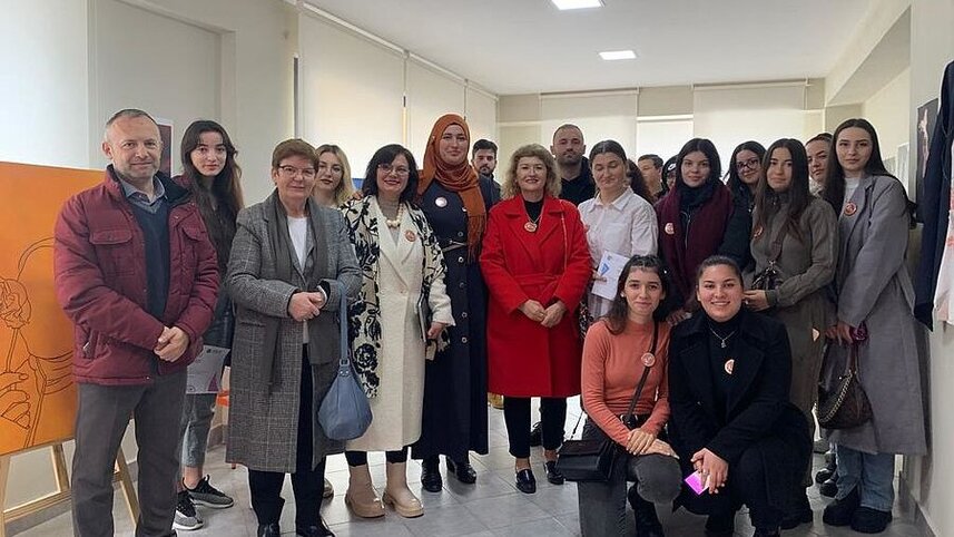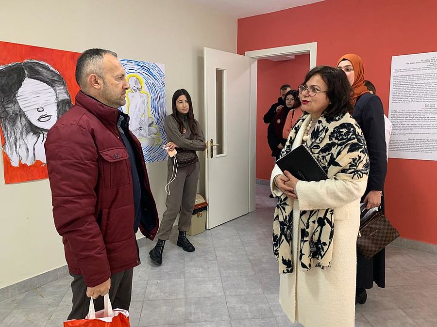 Sot një vend te veçantë dhe me shumë peshë në këtë aktivitet kundër dhunës me bazë gjinore zë ekspozita me punime të studentëve të Departamentit të Arteve, Universiteti “Luigj Gurakuqi”. Këto studentë krijuan me shumë emocion dhe profesionalizëm kompozimet e tyre. Që në fillim ato e mbështetën fuqimisht këtë temë, e cila përsëritet e përsëritet pambarim duke shpresuar që një ditë ti vijë fundi këtij cikli me temë Dhunën dhe të zëvendësohet me tema të tjera që flasin vetëm për pozitivitet dhe barazi gjinore. Falënderoj gjithë studentet pjesëmarrës në këtë ekspozitë dhe ju uroj suksese të vazhdueshme në rrugën e bukur të artit. Kombet nuk janë formuar prej burrave të shtetit, por prej njerëzve të shquar të ARTIT.