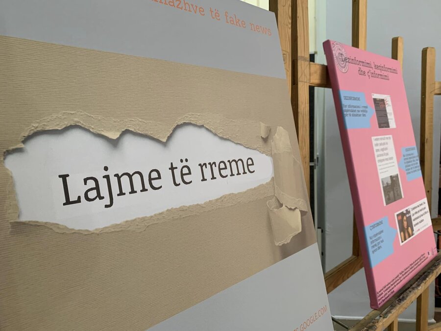 Studentët, të ndihmuar edhe nga Prof. As. Dr. Eranda Bilali, Dr. Vilma Piroli dhe z. Klevis Baja, përmes posterave, instalacioneve dhe pikturave kanë trajtuar tematika të tilla si: llojet e mediave, si po ndikon media tek të rinjtë, lajmet e rreme dhe mënyrat e identifikimit të tyre, deepfake, propaganda, dezinformimi etj. Kjo ekspozitë vjen si një mini-projekt brenda gamës së aktiviteteve të zhvilluara në UNISHK nga projekti "Media dhe edukimi mediatik për mësuesit e ardhshëm" i vënë në zbatim nga Instituti Shqiptar i Medias dhe me financim të Ambasadës Amerikane.