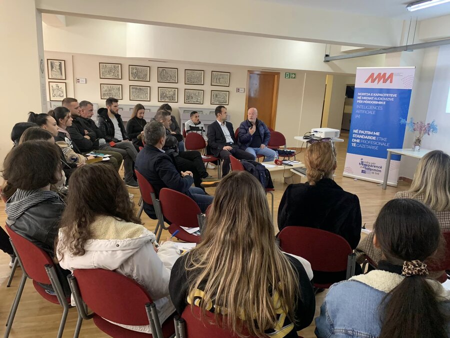 Në sallën “Vehbi Bala” të Bibliotekës Universitare, studentët e Gazetarisë ndoqën me shumë interes prezantim mbi Etikën e Përdorimit të Inteligjencës Artificiale në Media, nga Dr. Sami Nezaj, Drejtor i Qendrës për Transparencë dhe Informim të Lirë. Aktiviteti, i mbështetur nga AMA dhe i moderuar nga pedagogu Arben Prendi, përfshinte një studim mbi etikën në përdorimin e AI në televizionet shqiptare, duke përfshirë monitorimin e disa mediave dhe matjen e një indeksi të AI për televizione të ndryshme në Tiranë. Pjesëmarrja e lartë e studentëve e bënë këtë takim një moment kyç për ndërgjegjësimin mbi etikën në teknologjinë mediatike!