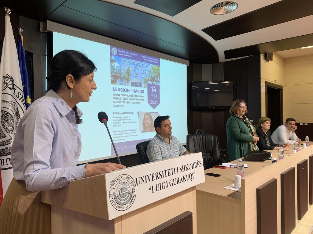 Sot, më 14 maj 2024, nga Departamenti i Lëndëve Kimike dhe Paraklinike, Fakulteti i Shkencave të Natyrës, u zhvillua leksioni i hapur me temë “Forca e dashurisë në fushën e shëndetësisë: nga komunikimi i diagnozës deri te kurat paliative” nga mjekja e specializuar në psikiatri, Paola Argentino, profesoreshë e Universitetit “Sakro Cuore”, Fakulteti i Mjekësisë dhe Kirurgjisë, Romë , Itali.