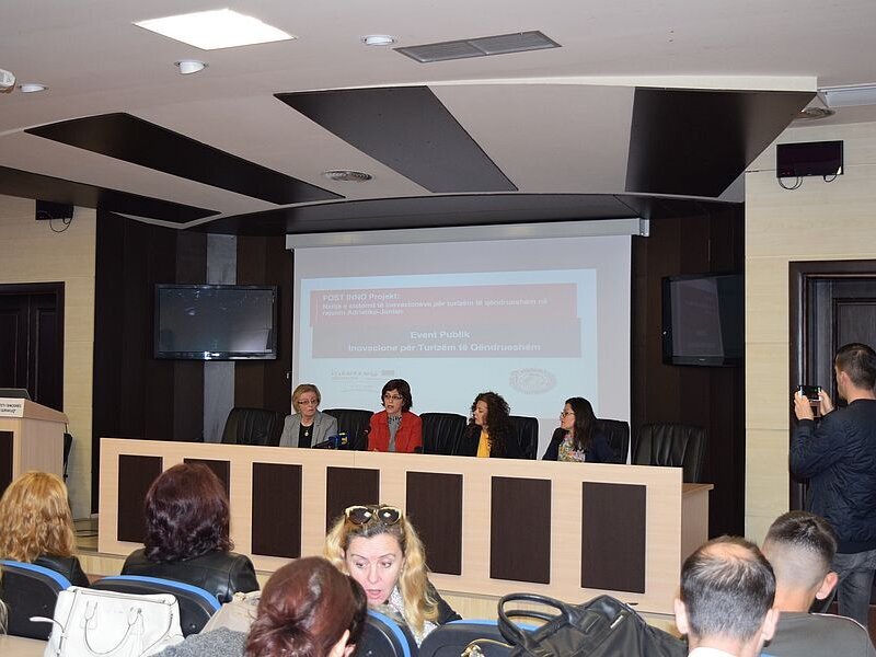 The event was opened with the speech of prof.as.dr.Mirjam Dibra, who welcomed the participants and presented the activities so far developed as a UNESCO contact point for the Adriatic Innovation Center for Tourism Innovation in the Adriatic-Ionian Region. Prof. Mirjam Dibra emphasized the importance of activities that connect sustainable tourism businesses with students and the academic world. Thus, trainings, on-line consultations with tourism stakeholders and a public competition on innovative ideas for Sustainable Tourism were conducted, whereby the support of the staff of the academic staff of the Tourism Department was provided to businesses.