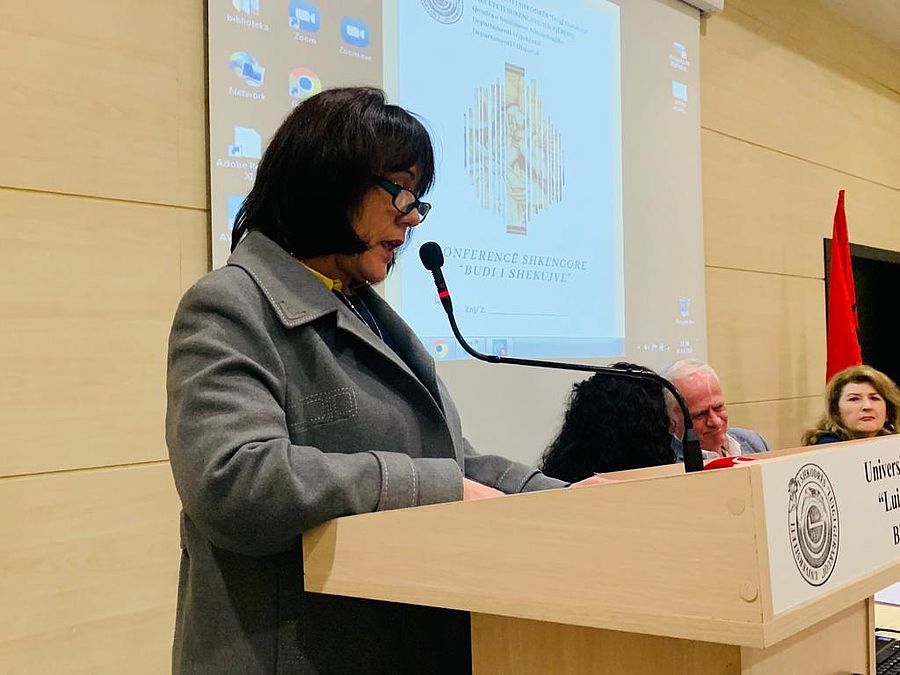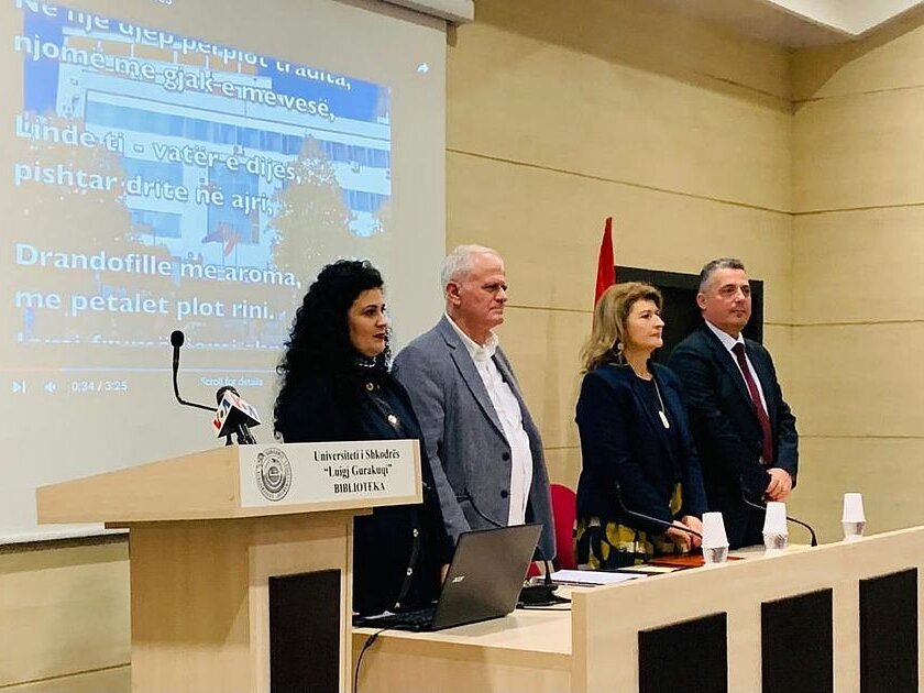 Prof. Dr. Suzana Golemi, Rektore e Universitetit të Shkodrës “Luigj Garakuqi”, mbajti fjalen pershendetese.