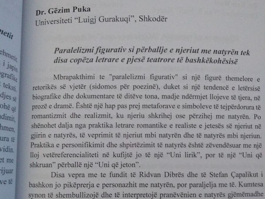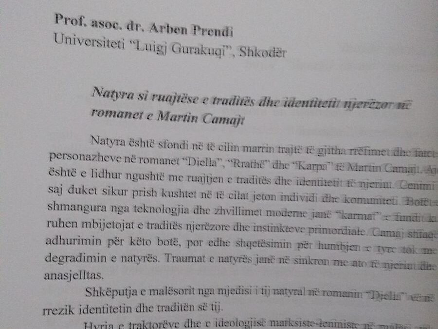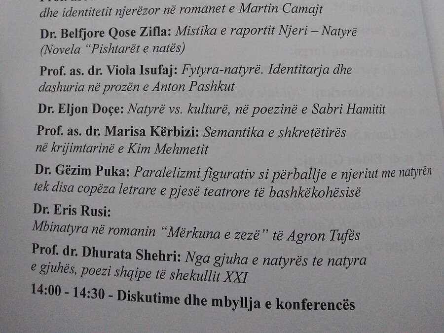 Konferenca shkencore "Letërsia shqipe dhe natyra" organizuar nga Departamenti i Letërsisë në Fakultetin e Historisë dhe Filologjisë në Universitetin e Tiranës i zhvilloi punimet më datë 15. 12.2022. Nga Departamenti i Letërsisë, në fakultetin e Shkencave Shoqërore morën pjesë me kumtesa: Dr. Gëzim Puka: "Paralelizmi figurativ si përballje e njeriut me natyrën tek disa copëza letrare e pjesë teatrore të bashkëkohësisë" dhe prof.as. dr. Arben Prendi: "Natyra si ruajtëse e traditës dhe identitetit njerëzor në romanet e Martin Camajt".Në panelin drejtues të seancës së dytë ishte edhe prof.as. dr Arben Prendi, drejtori i Departamentit të Letërsisë nga Universiteti i Shkodrës "Luigj Gurakuqi".