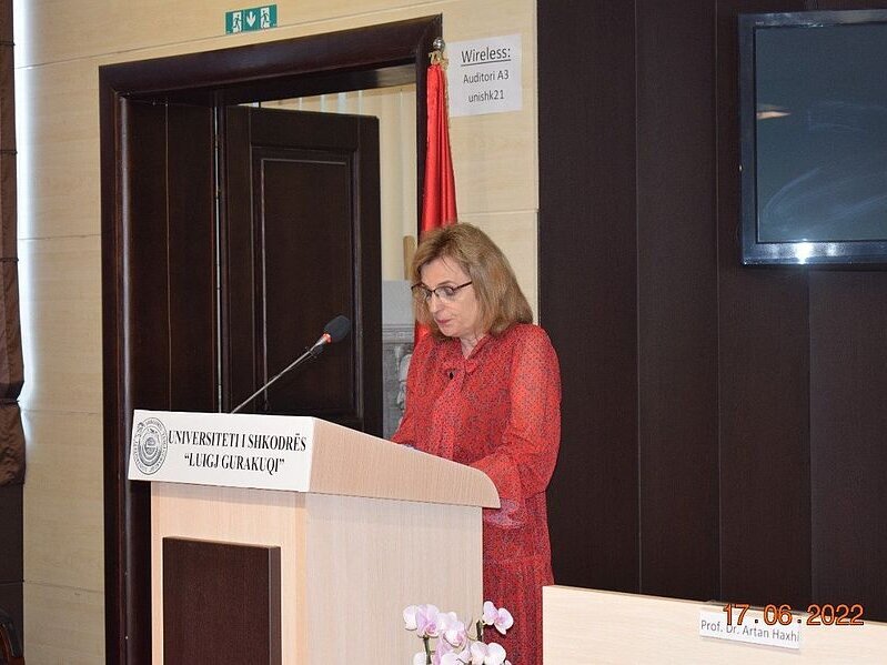 Konferenca u përshëndet nga pedagogët e nderuar të Universitetit të Shkodrës “Luigj Gurkuqi”, si dhe nga prof.dr.Tomi Treska nga Universiteti Europian, të cilët kumtuan punimet e tyre referuar kontributit të prof.dr. Vehbi Hotit.