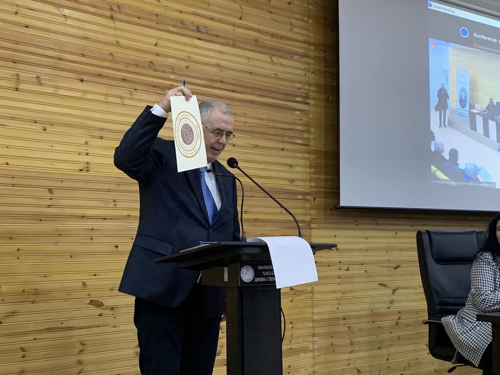 Fjalën përshëndetëse në emër të ASHSH, e mbajti akademiku i asociuar prof. Gëzim Hoxha.