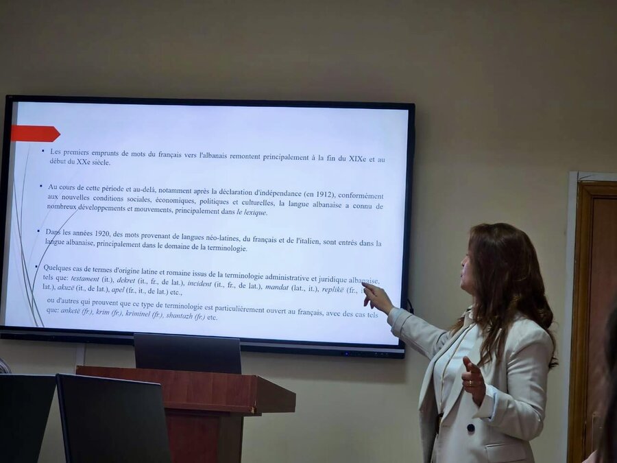 Në fund të ligjëratës, u zhvillua një punë praktike ndërvepruese me studentët francezë dhe ata të programit “Gjuhë-Letërsi” të FSHSH, ku u analizuan fjalët e huazuara nga frëngjishtja në shqip. Diskutimet ishin frymëzuese dhe nxorën në pah rolin e gjuhëve në ndërtimin e dialogut ndërkulturor .