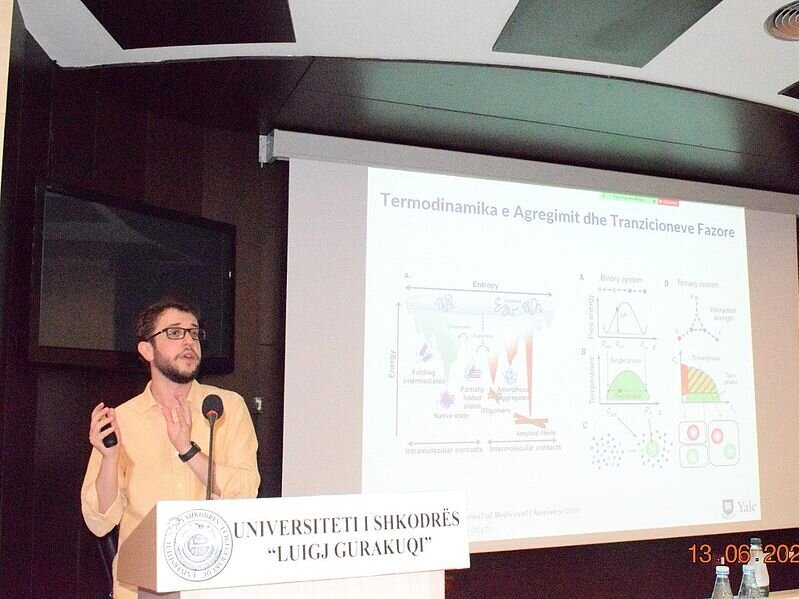 U zhvillua në mjediset e Auditorit A3 të Universitetit të Shkodrës “Luigj Gurakuqi” leksioni i hapur me titull “Këndvështrimi fizio-biokimik i proçesit të agregimit, nga statistikat në kompjuterizim i mbajtur nga studenti PhD i Universitetit të Yales në SHBA, Arlind Kaçirani.