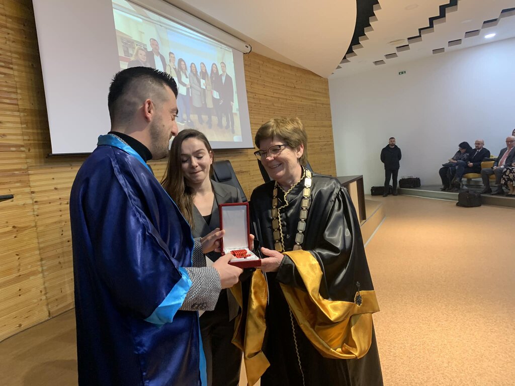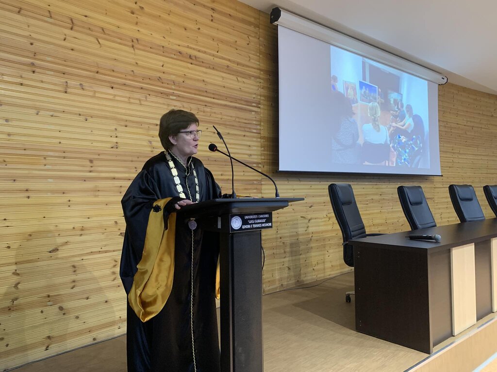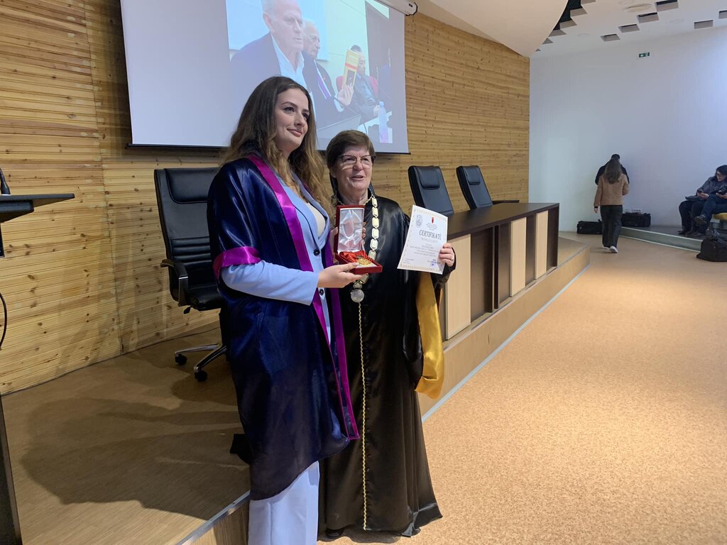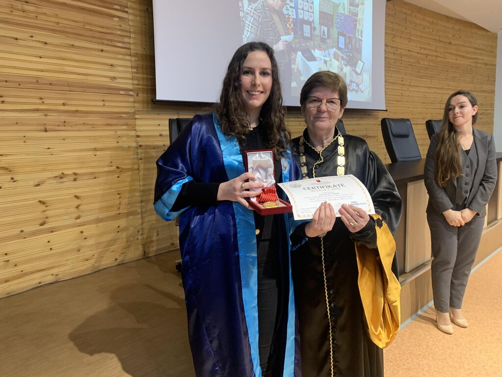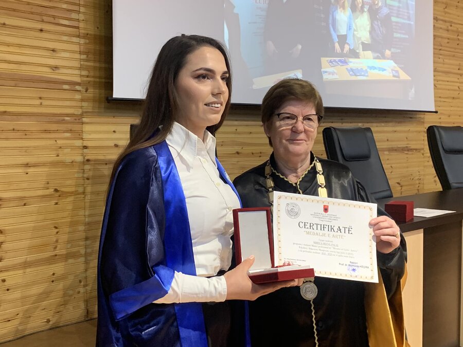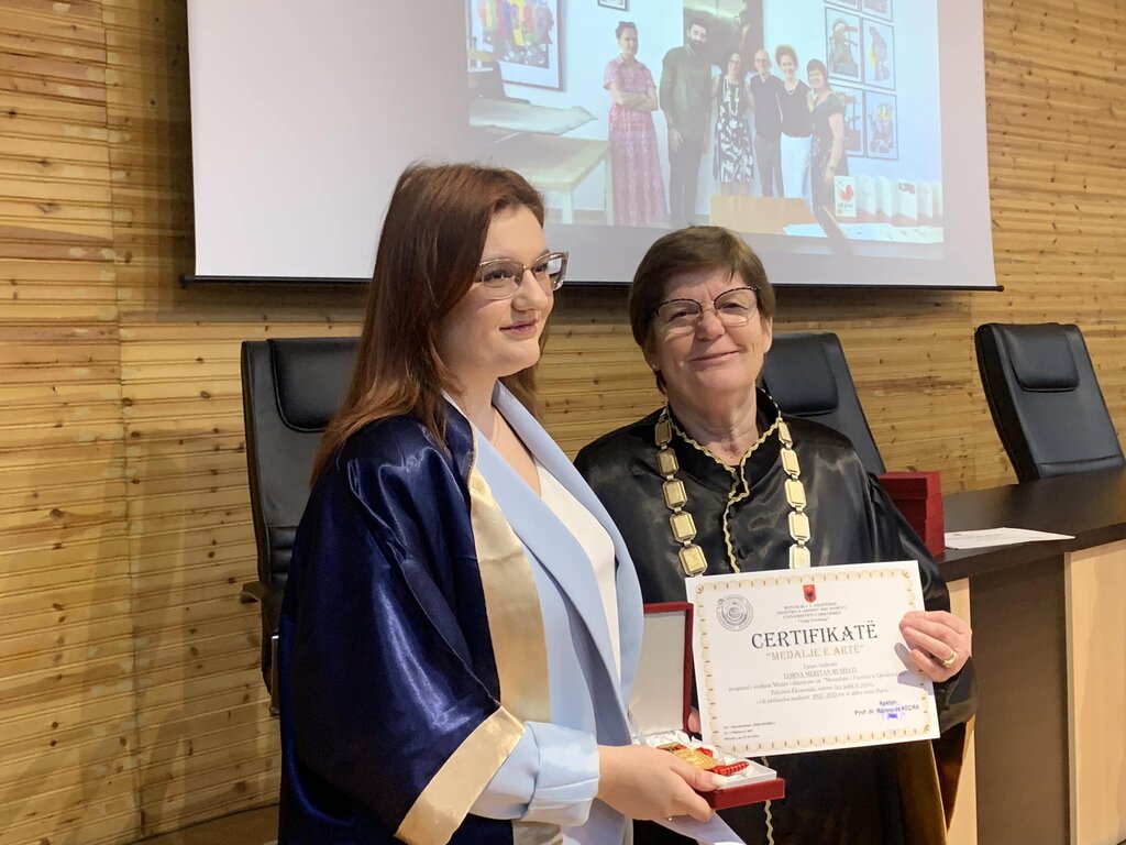 Pas fjalës përshëndetëse, rektorja Prof. Dr. Rajmonda Këçira u dorëzoi medaljet e arta studentëve: Bepin Kolvataj, Ervis Drekaj, Fiona Arrinaj, Lorna Bushati, Mirela Palaj, Marseda Tahiri, Mariza Deja, Xhulia Gjergi dhe Sabrid Ulqinaku.