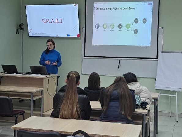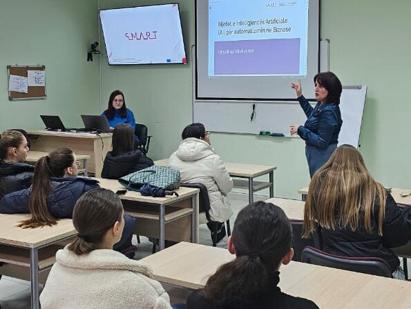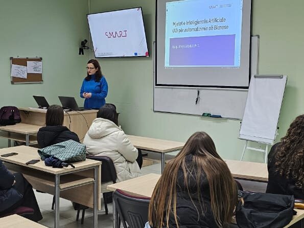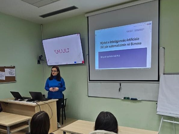 Në kuadër të aktiviteteve të projektit ERASMUS-EDU-2022-CBHE; SMART Innovation Centers for the Development of Innovative and Entrepreneurial Thinking to Facilitate the Development of Sustainable Smart Solutions in the Western Balkans. Project: 101082938 — SMART u zhvillua trainimi me temë “ Mjetet e Inteligjencës Artificiale (AI) për Automatizimin në Biznes”.