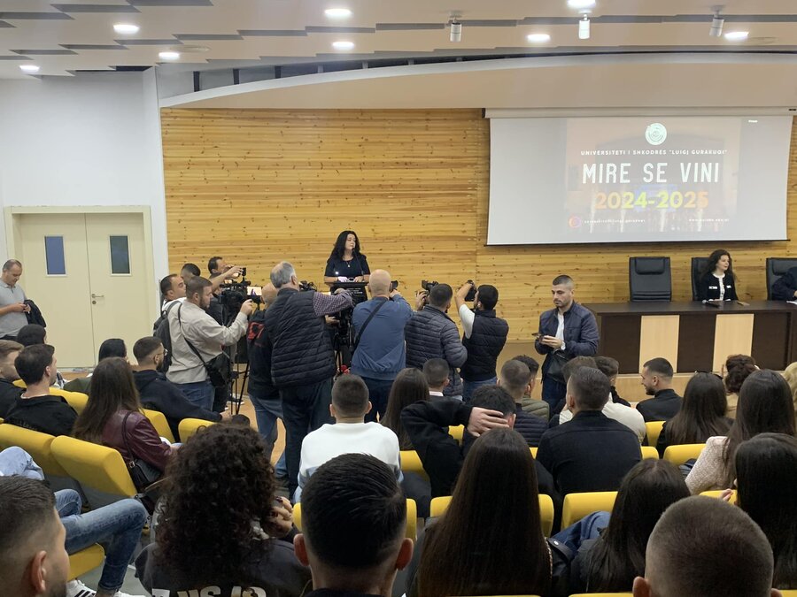 Në ditën e parë të vitit akademik 2024-2025, rektori i Universitetit të Shkodrës “Luigj Gurakuqi” zgjodhi Fakultetin Ekonomik për të përshëndetur studentët dhe për t’u uruar suksese në rrugën e vështirë, por të bukur të dijes, ndërkohë që secili fakultet e festoi këtë ditë me studentët e vet në godinat përkatëse.