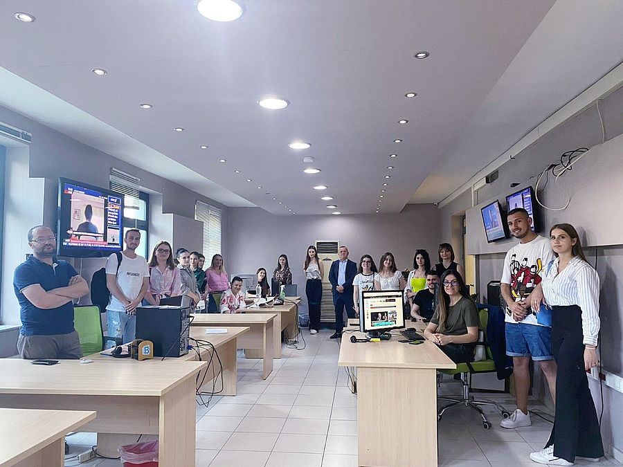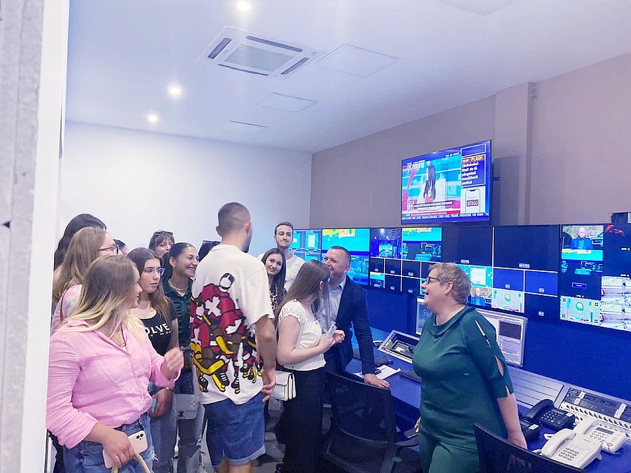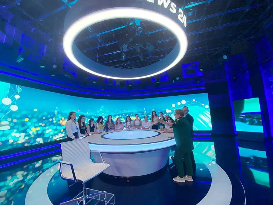 Studentët e vitit të dytë u shoqëruan nga pedagogia Hymerta Ura që jep lëndën "Shkrim Raportim Lajmi" dhe tema e diskutuar ishte "Gjuha e thjeshtë e raportimit të lajmit”