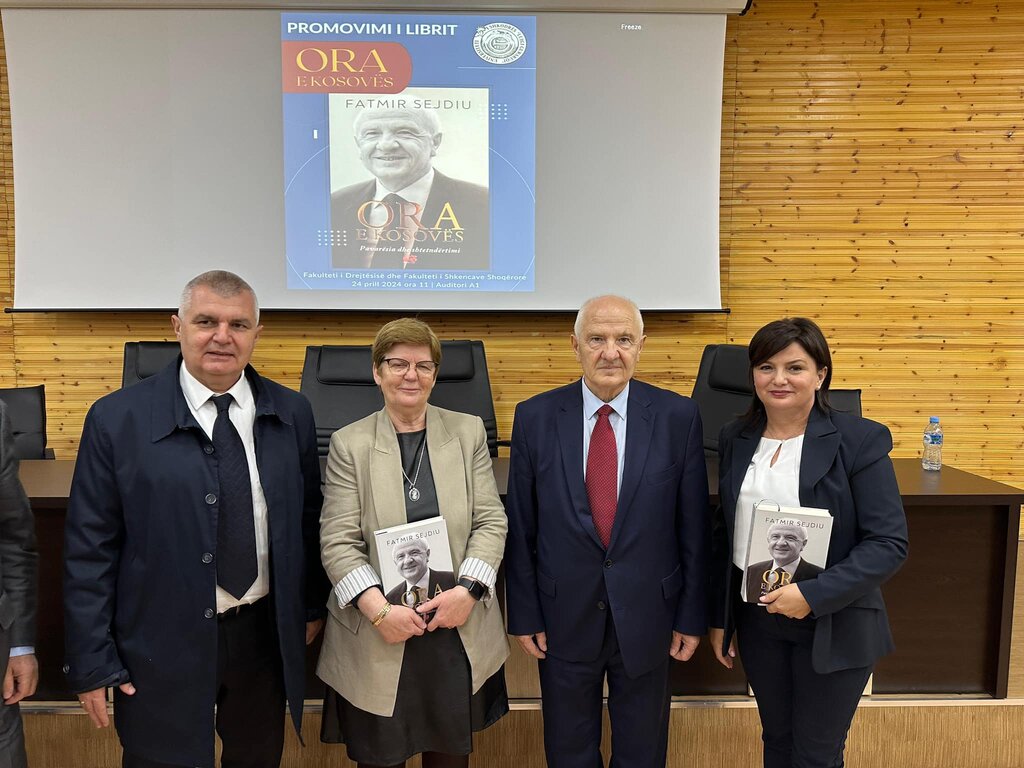 Pas këtij takimi, Fakulteti i Drejtësisë dhe Fakulteti i Shkencave Shoqërore si bashkorganizues zhvilluan promovimin e librit “Ora e Kosovës” me autor Prof.Dr. Fatmir Sejdiu.