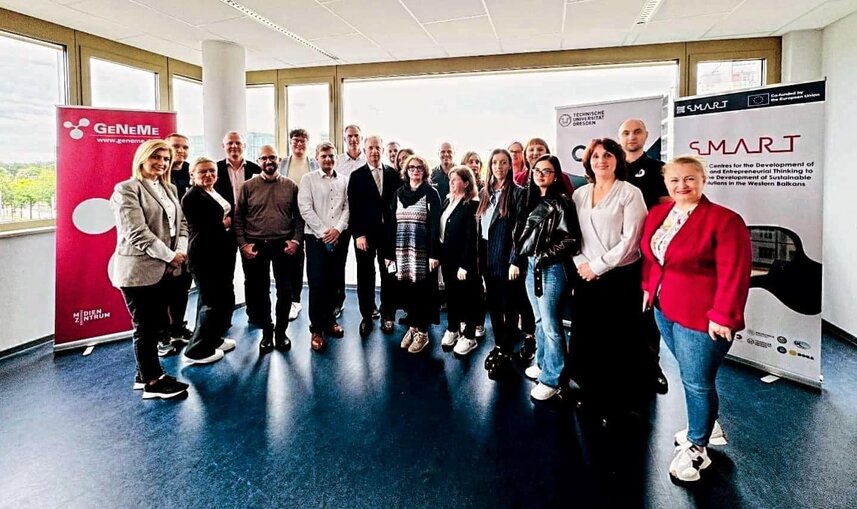 Pedagogët e Fakultetit Ekonomik, Ylvije Kraja dhe Peter Saraçi morën pjesë në Takimin e Konsorciumit të Projektit SMART të mbajtur në Universitetin e Shkencave të Aplikuara në Dresden. Ky takim ishte një mundësi e shkëlqyer për të diskutuar strategjitë e reja për zhvillimin e Qendrave të Inovacionit SMART, të cilat kanë për qëllim fuqizimin e universiteteve në Ballkanin Perëndimor përmes rritjes së kapaciteteve akademike dhe infrastrukturës.
