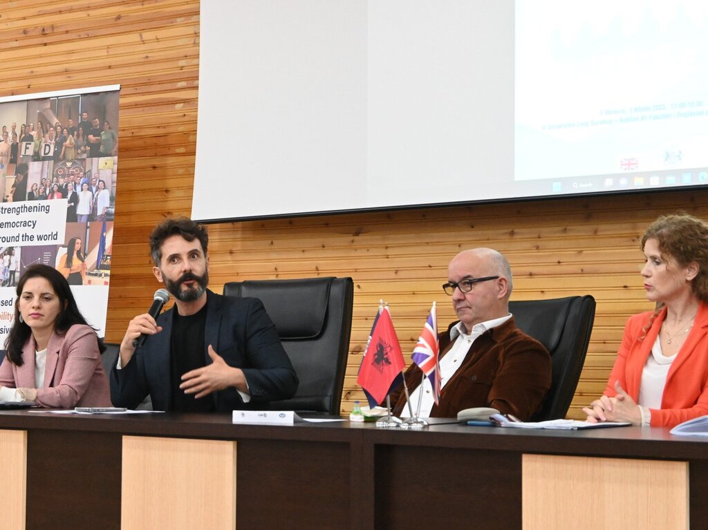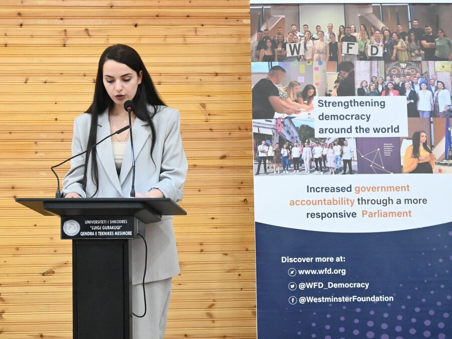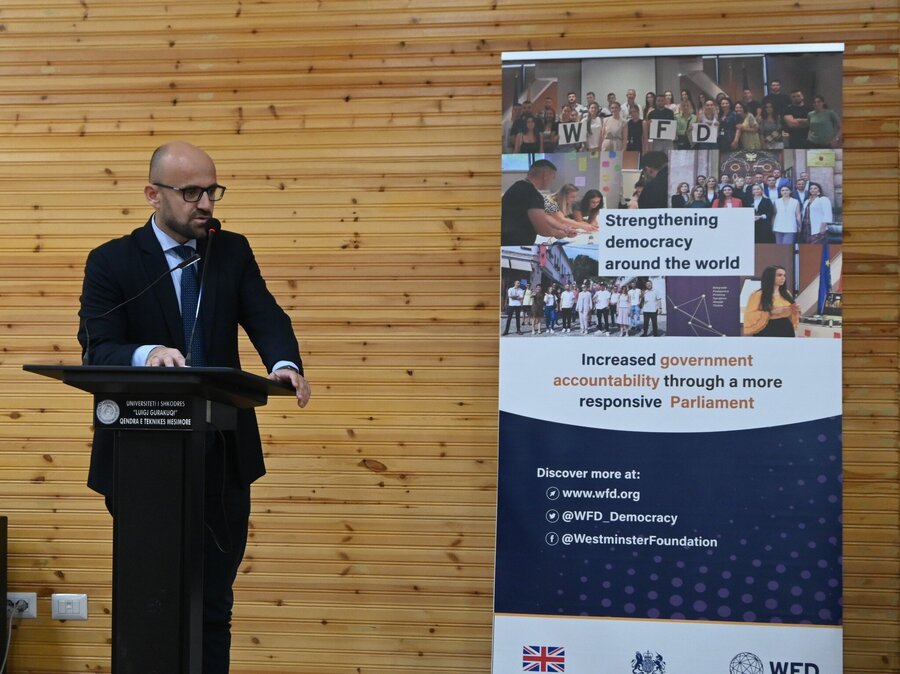 Në auditorin A1 të Fakultetit Juridik, ditën e mërkurë, datë 1.11.2023, u zhvillua një tryezë diskutimi e organizuar nga Fondacioni Westminister Foundation për Demokraci në bashkëpunim me Universitetin e Shkodrës “Luigj Gurakuqi” dhe Institutin Parlamentar, në kuadër të projektit “Rritja e Llogaridhënies së Qeverisë përmes një Parlamenti më Reagues”, financuar nga Ambasada Britanike në Tiranë.