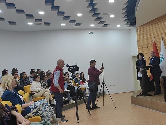 The participants in the seminar were greeted by the Director of IYE Shkoder Mr. Zafer KIYICI. Dean of the Faculty of Economics Prof.as.Dr. Blerta Dragusha expressed her gratitude to IYE Shkodra for their continuous fruitful cooperation with the Faculty of Economics and praised Doc.Dr. A.T. KIZBAZ for holding this seminar open and expressed the readiness of the Faculty of Economics for further cooperation with Istanbul TOPKAPI University