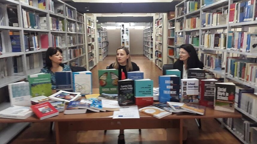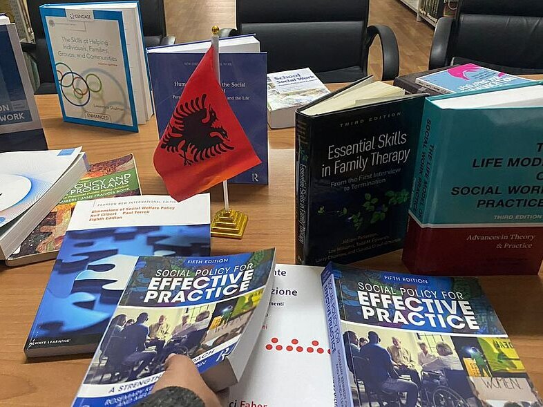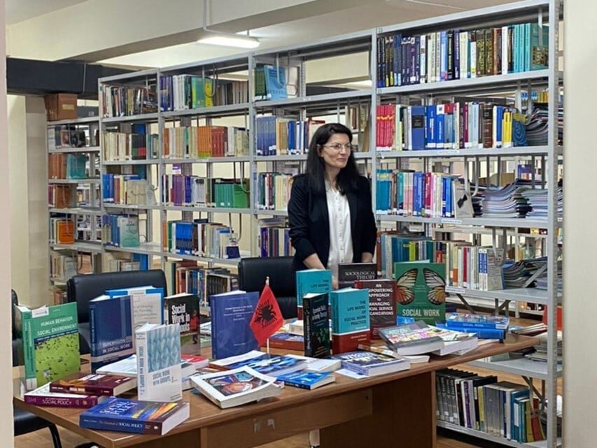 E ftuar nga biblioteka, pedagogia Dr. Bujana Topalli, informoi të pranishmit për fondin e librave të Punës Sociale, financuar nga Komisioni Europian, i cili përfshin botime të viteve të fundit, në gjuhën angleze, nga autorë dhe shtëpi botuese ndër më prestigjozet e botimeve shkencore.
