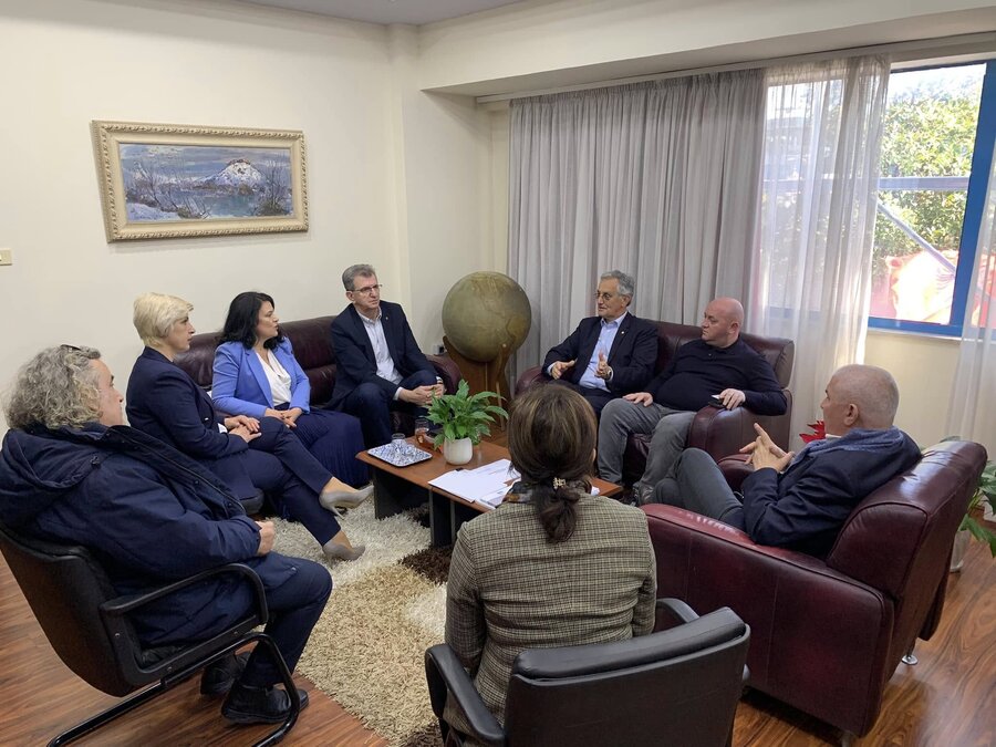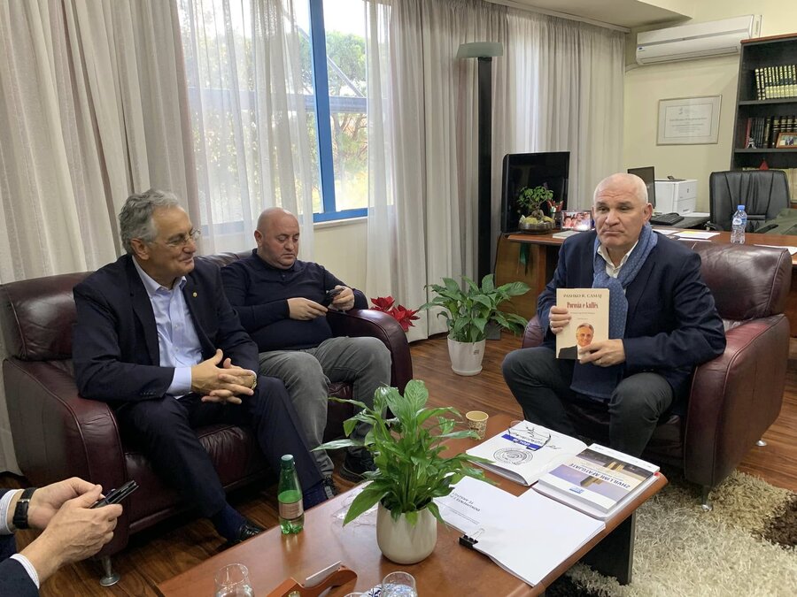 Të pranishmit u mirëpritën nga rektori Gjuraj. Gjatë takimit u diskutua mbi mundësinë e bashkëpunimit mes Universitetit “Luigj Gurakuqi” dhe Federatës Panshqiptare Vatra.
