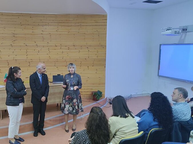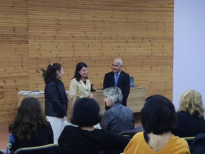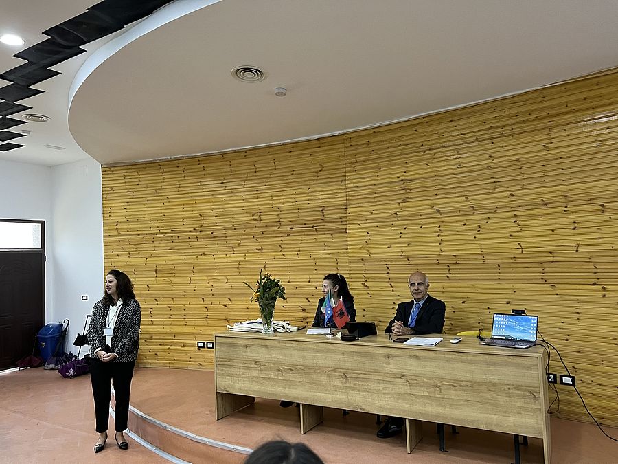 Z.Muhamet Ketata, drejtor i Agjensisë Universitare të Frankofonisë për Evropën Qendrore dhe Lindore përgëzoi drejtuesit dhe kolegët për mirëpritjen, vlerësoi bashkëpunimin me USH, i cili mund të zgjerohet në shumë drejtime. Ai paraqiti strategjinë e re të këtij institucioni në ndihmë të universiteteve anëtare, bazuar në sigurimin e cilësisë, zhvillimin e kërkimit shkencor, administrimin e universiteteve, transformimin dixhital, barazinë gjinore. Takimi vijoi me referimet e të ftuarve mbi përvojën e deritanishme të këtij bashkëpunimi, nevojat dhe pritshmëritë në të ardhmen. U theksuan : rëndësia e projektit të financuar nga AUF “Krijimi i programit të studimit Bachelor në Gjuhë të Huaja për Turizmin” implementimi i të cilit po ndihmon në përmirësimin e kurrikulave ekzistuese dhe zgjerimin me programe të reja të përbashkëta me universitet e huaja; rëndësia e mobiliteteve në kuadër të projekteve Erasmus + , mundësia e atashimit të institutive kërkimore -shkencore në rrjetet botërore të intituteve shkencore të AUF; përvoja e stasheve të paguara nga AUF për studentët e gjuhës frënge në fushën e përkthimit, pranë Shoqatës së Mësuesve Shqipëri si dhe pjesëmarrja në Festivalin e studentëve frankofon në Bukuresht.