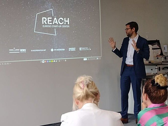 Prof. Dr. David Bendig, kreu i institutit për sipërmarrjen në Universitetin e Münster-it dhe anëtar i bordit ekzekutiv në Qendrën REACH-EUREGIO, prezantoi se si REACH i mbështet studentët që ta shndërrojnë frymëzimin e tyre në një karrierë të vërtetë.