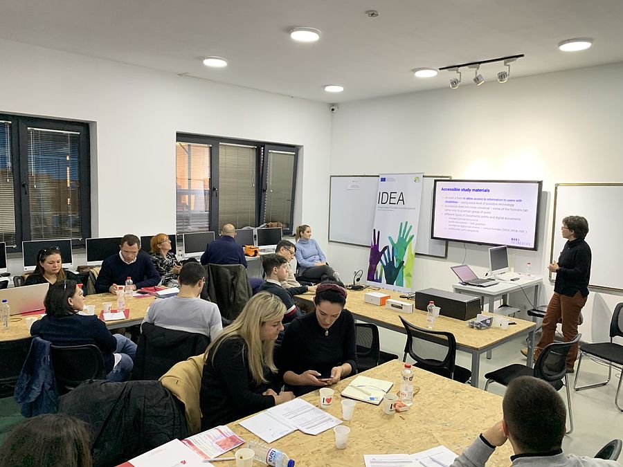 Në vazhdën e trajnimeve të projektit IDEA - Arsimi i lartë gjithëpërfshirës në Ballkanin Perëndimor, i cili prej 2 vitesh po aplikohet në universitetin tonë, u zhvillua trajnimi i radhës në Kolegjin Universum në Prishtinë, më 17-19 janar 2023. Pedagogë nga universiteti National and Kapodistrian i Athinës (Greqi) dhe ai Masarik, Limerick (Republika Çeke) përcollën tek pjesëmarrësit e këtij trajnimi përvojat e tyre mbi teknologjitë asistive (ndihmëse) dhe përdorimin e tyre me studentët me aftësi të kufizuar. Përmes demonstrimit dhe diskutimeve përfaqësuesit e universiteteve të Ballkanit Perëndimor u njohën me praktikat më të mira dhe mundësitë që pajisjet teknologjike mund t’i lehtësojnë të nxënit studentëve më aftësi të kufizuara, risi që së shpejti do të jetë pjesë edhe e universitetit tonë përmes një laboratori me një teknologji specifike e të përshtatshme për këta studentë.