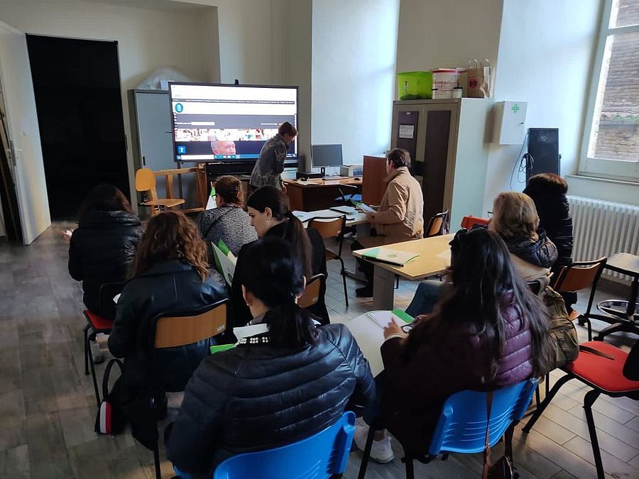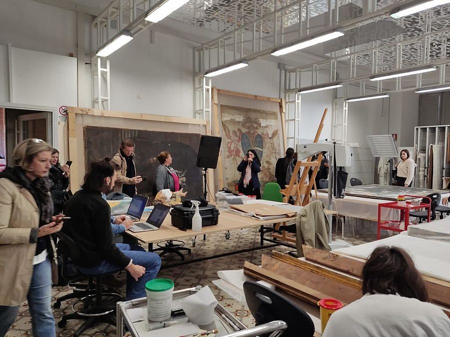 Në vijimësi të trainimeve gjatë punës në kuadër të projektit REACH (Improving Research capacities of Albanian higher education institutions in conservation and restoration of Cultural Heritage) financuar nga Programi i Komunitetit Europian Erasmus+, u zhvilluan disa ditë trajnimi për anëtarët e grupit të punës së projektit REACH nga të gjitha Universitetet shqiptare në Universitetin e Urbinos, Itali, nga data 8-11 Nëntor 2022. Trainimi u fokusua në transmetimin e metodikave të punës në laboratoret e restaurimit, si dhe në përdorimin e instrumenteve diagnositike për restaurimin e konservimin e veprave të artit. Gjithashtu në një ditë pune studimore në Monte San Pietrangeli, më 10 Nëntor, u nda një përvojë e punës së restauratorit në vendin ku ndodhet vepra, pa e zhvendosur atë, e përfshirjes së komunitetit dhe autoriteteve lokale në procesin e ruajtjes dhe të restaurimit. Keshtu projekti synoi të ndajë me partnerët shqiptarë përvojën e restaurimit të tablosë Madonna col Bambino, Santi e Apostoli (Shekulli XVI) dhe idenë e krijimit të një laboratori të hapur për komunitetin.