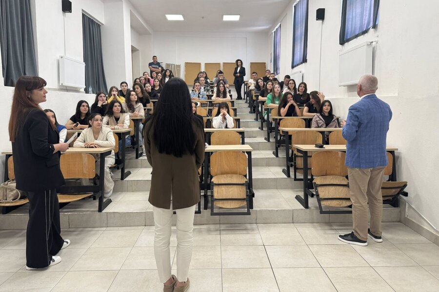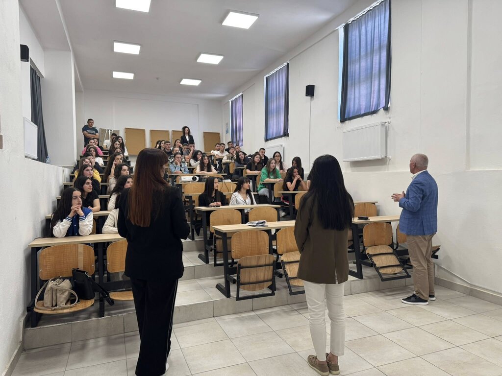 Pedagogia Rezearta Murati ndau me maturantët rëndësinë e edukimit të lartë në fushat shoqërore dhe ndikimin që këto drejtime kanë në ndërtimin e një shoqërie të drejtë dhe të zhvilluar.