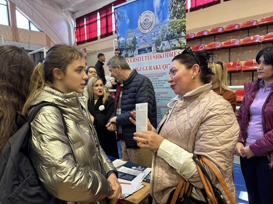 Në Panairin “Work & Study”, Rektori Tonin Gjuraj, së bashku me pedagogë nga 6 fakultete të UNISHK, u takuan me maturantët për të prezantuar ofertën akademike dhe jetën studentore që ofron Shkodra. Rektori theksoi se Shkodra duhet të kthehet në një qytet universitar.