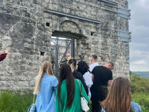 ➢ Kalaja e Ulqinit, tërhoqi vëmendjen e veçantë të studentëve dhe pedagogove. Arkeologu dhe kuratori i muzeut të Kalasë u foli të pranishmëve për historikun, legjendat dhe ndërtimin e saj, duke e pranëvënë historikun e qytetit të Ulqinit me atë të Shkodrës.