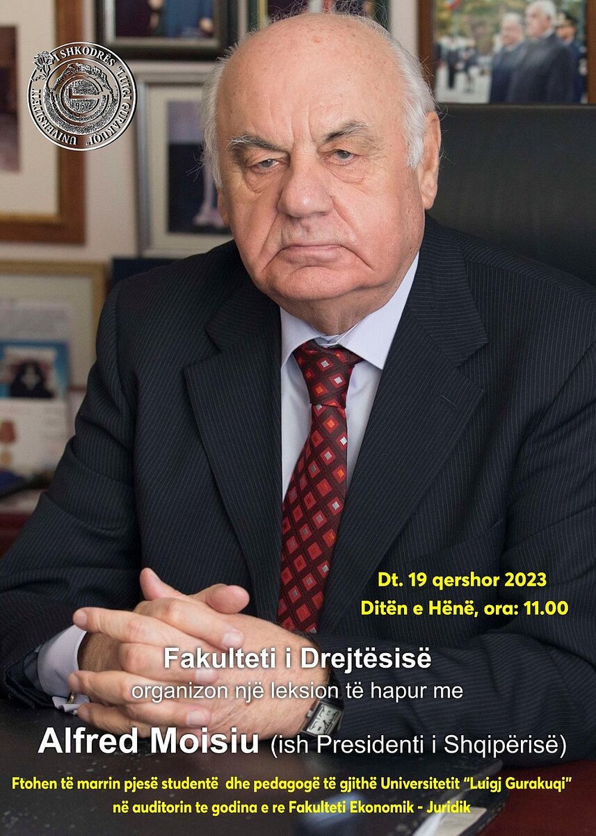 Fakulteti Juridik i Universitetit të Shkodrës "Luigj Gurakuqi" oraganizon leksionin e hapur që do të drejtohet nga ish-Presidenti i Shqiperise z.Alfred Moisiu