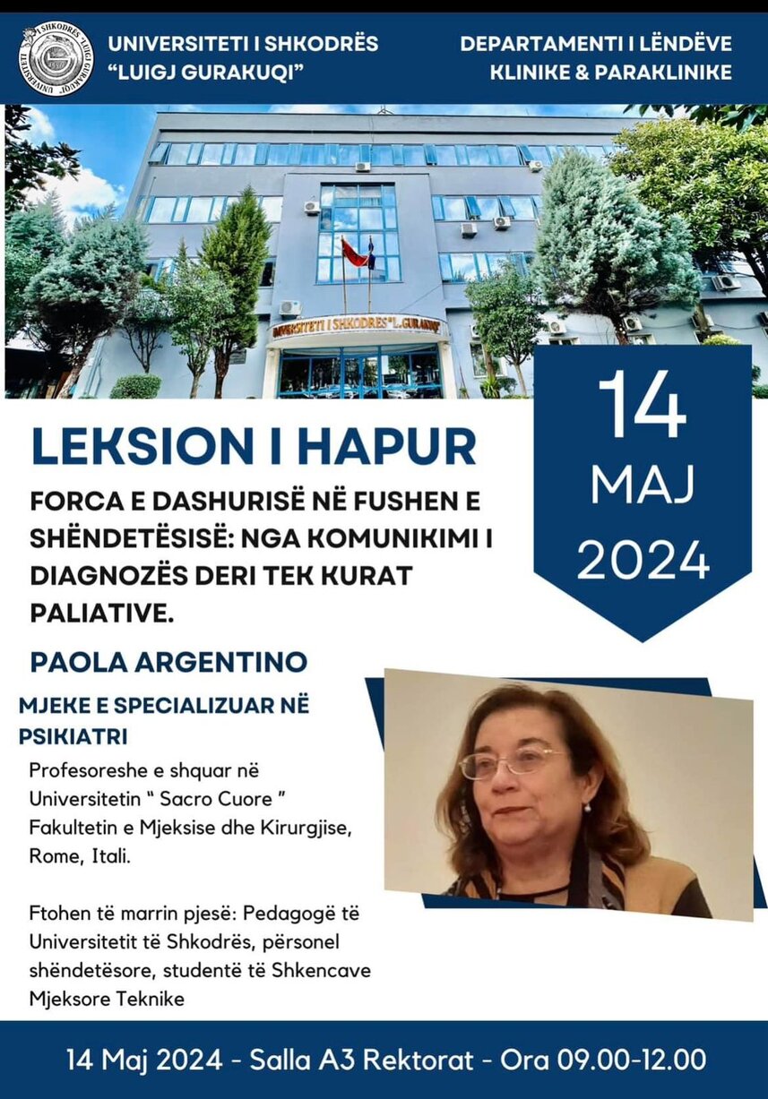 Organizon Leksion të Hapur me teme: Forca e dashurisë në fushen e shëndetësisë: nga komunikimi i diagnozës deri tek kurat paliative.