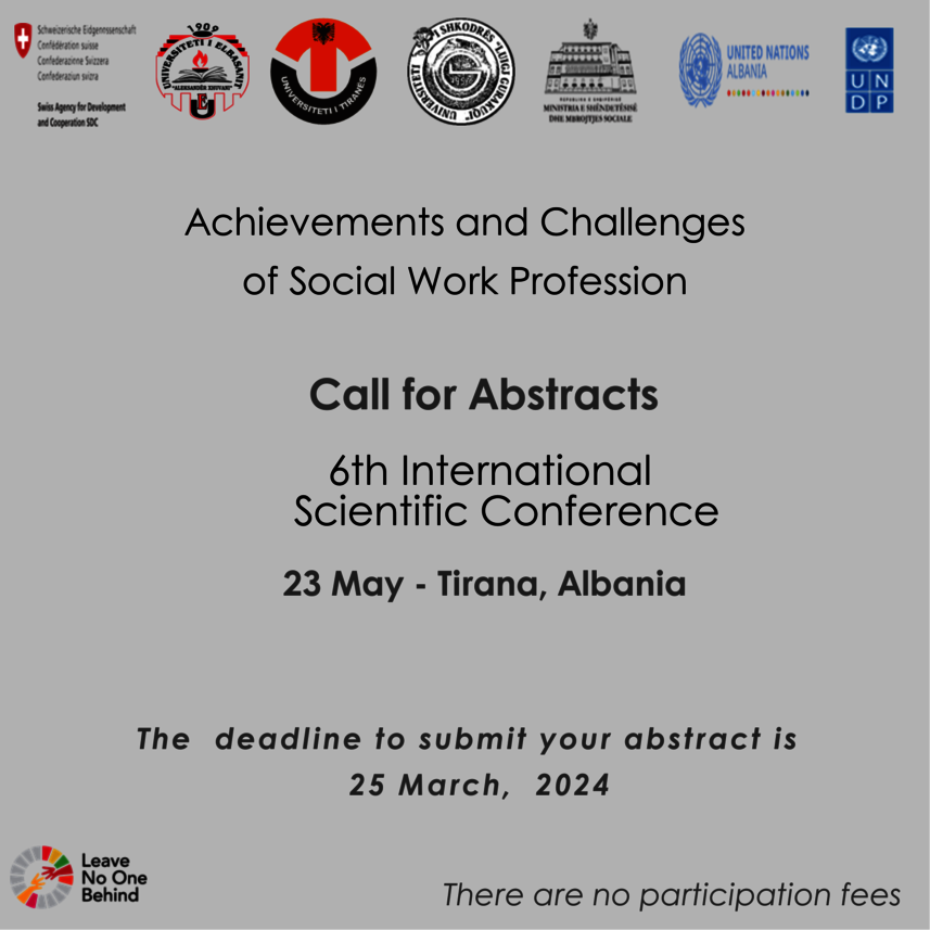 Thirrje për Konferencën e 6-të Ndërkombëtare Shkencore, Achivements and Challenges of Social Work Profession