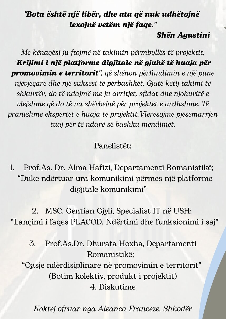KRIJIMI I NJË PLATFORME DIGJITALE NË GJUHË TË HUAJA PËR PROMOVIMIN E TERRITORIT - TAKIMI PËRMBYLLËS