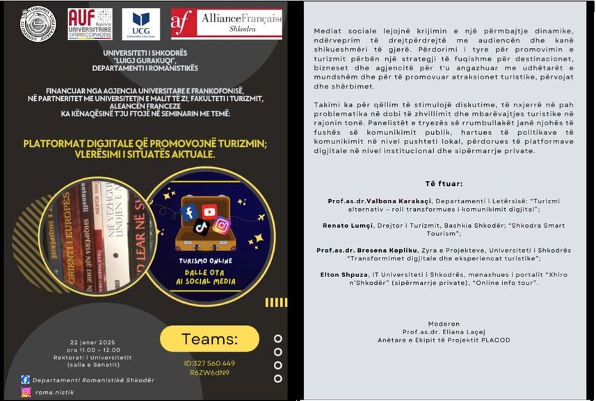 - Prof.as.dr. Bresena Kopliku, Zyra e Projekteve, Universiteti i Shkodrës “Transformimet digjitale dhe eksperiencat turistike”;