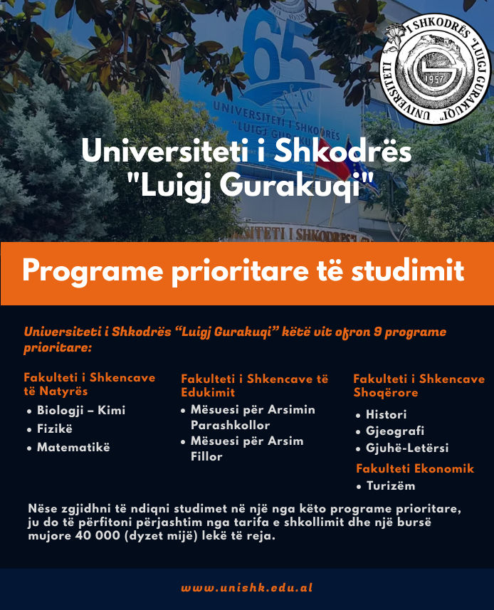 Universiteti i Shkodrës “Luigj Gurakuqi” këtë vit ofron 9 programe prioritare: