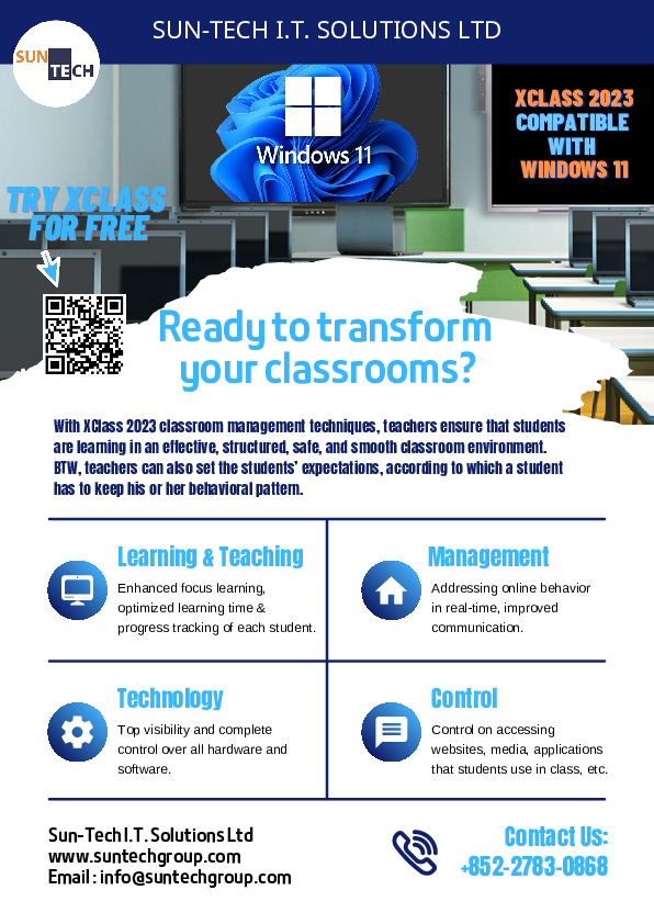 For more than 25 years, Sun-Tech XCLASS is the market-leading school multi-platform classroom management software solution.