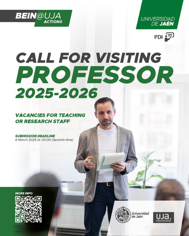 Proposals for the hiring of Visiting Professors will be made by the Department, Research Institute or Center of the University of Jaén. In accordance with the Regulations for the Hiring of Visiting Professors of the University of Jaén, the proposed candidates must hold the status of employees, in a civil service or labor regime, of other universities or research centers, preferably foreigners.